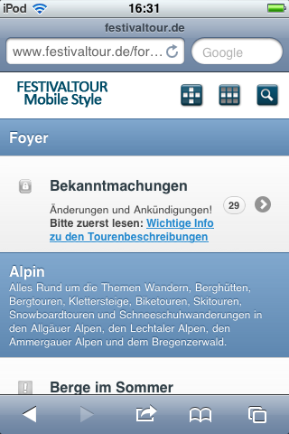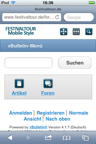 Wenn ihr mit solch einem Gerät unsere Seite www.festivaltour.de aufruft sieht das wie folgt aus: