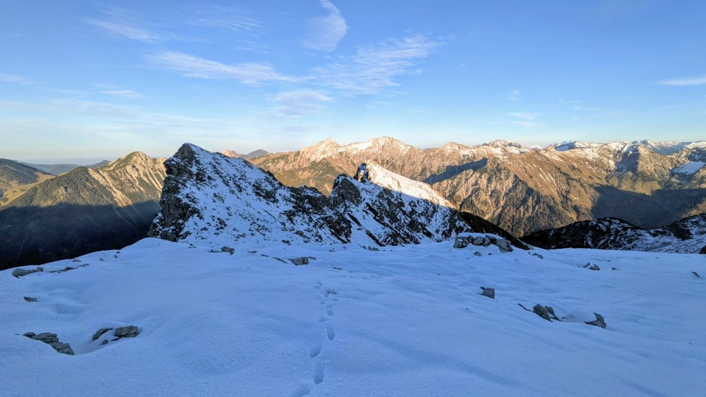 Kurz vor der Scharte zwischen Kleinem Daumen und Auf dem Falken. Hier hatte es massiv Schnee (<50 cm)
